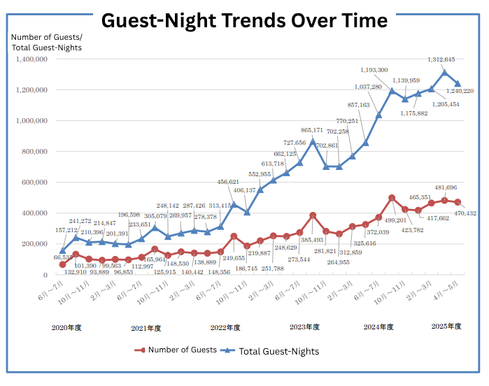 Guest-night statistics (Source: Japan Tourism Agency, 2025)